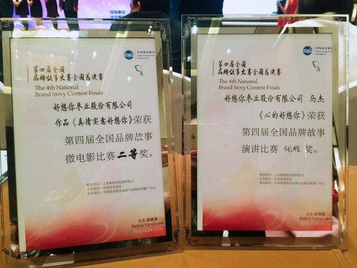 此次大赛在全国设立17个分赛区,设有演讲、征文、微电影三个比赛项目。9月中旬,好想你枣业参与了郑州分赛区的角逐。在演讲比赛单元,公司选送的参赛选手,来自营销管理中心的马杰获得郑州赛区二等奖;来自木本良公司的敬珊珊获得三等奖。马杰作为河南地区代表于10月下旬参与全国总决赛。同时,公司选送的微电影和征文也入选全国总决赛。最终,公司选送的影片《真情实意好想你》以真情实意的情感、精细优良的制作在全国各地百余企业选送的品牌故事作品中脱颖而出,获得微电影项目全国二等奖;马杰演讲的《心的好想你》获得演讲比赛项目全国优胜奖。