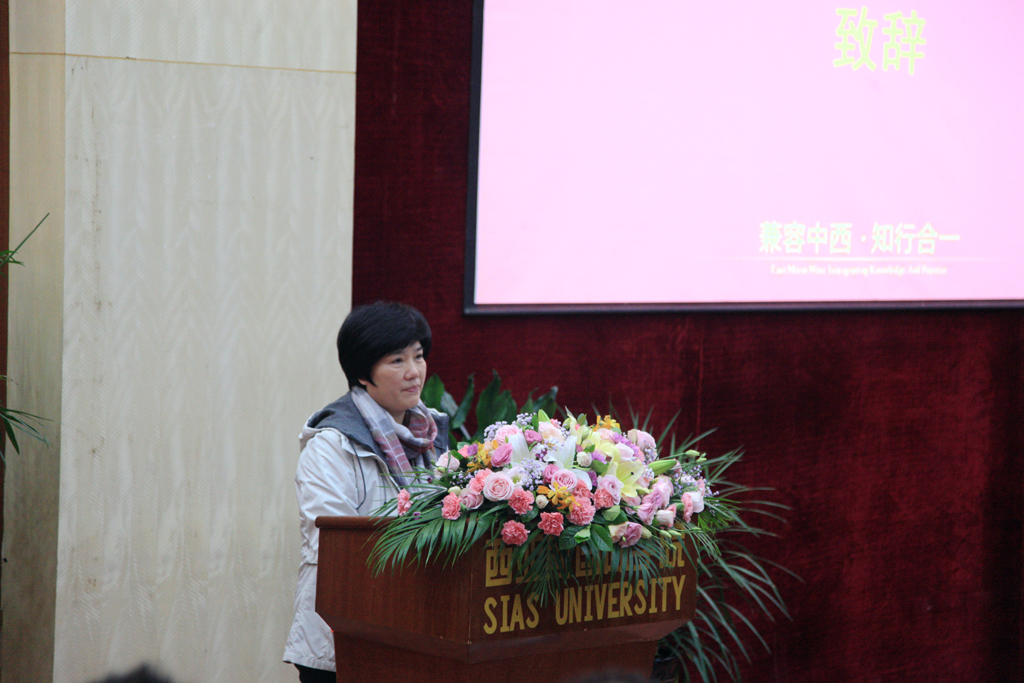 西亚斯国际学院理事长陈肖纯致辞。