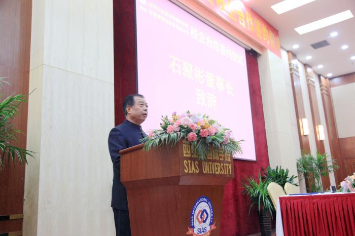 好想你枣业董事长石聚彬,西亚斯国际学院理事长陈肖纯分别代表合作双方致辞。好想你枣业董事长石聚彬指出:“双方达成校企合作,要有国际化的视野,结合企业的发展战略和需求,培养专业化和创新型的人才,提升企业的核心竞争力。同时,双方将共同探索独特的商学院发展模式,最终打造出一个国际化教育品牌。”西亚斯国际学院理事长陈肖纯讲到:“西亚斯国际学院以成为城市的社区中心、促进城市发展为驱动力,以培养能适应国际竞争的学生为目标,希望通过校企合作,使学生有更多的实习锻炼机会,做到知行合一,同时也可以为企业输送源源不断的高素质人才,做到合作共赢,为社会发展做出更大的贡献。”