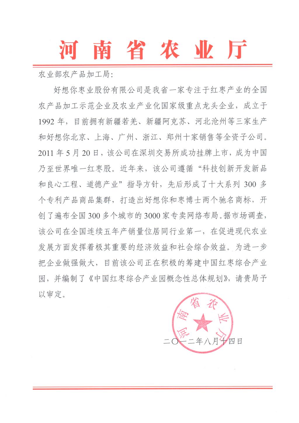 本报讯枣乡风情醉金秋,田园遍地红玛瑙。9月1日上午,2012中华枣乡风情游暨第十届好想你红枣文化节开幕式在好想你枣业隆重举行,公司全体员工和社会各界的枣迷们迎来了这一盛况空前的枣乡旅游活动。