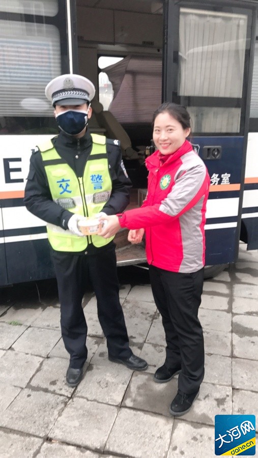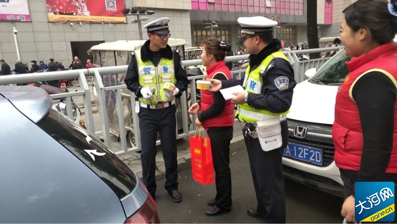 早上8点起,在郑州东大街紫荆山、航海路大学路、嵩山路淮河路、华山路中原路等路段,好想你的爱心使者走上街头,将刚刚用热水冲泡好的清菲菲红枣湘莲银耳汤送给执勤交警。