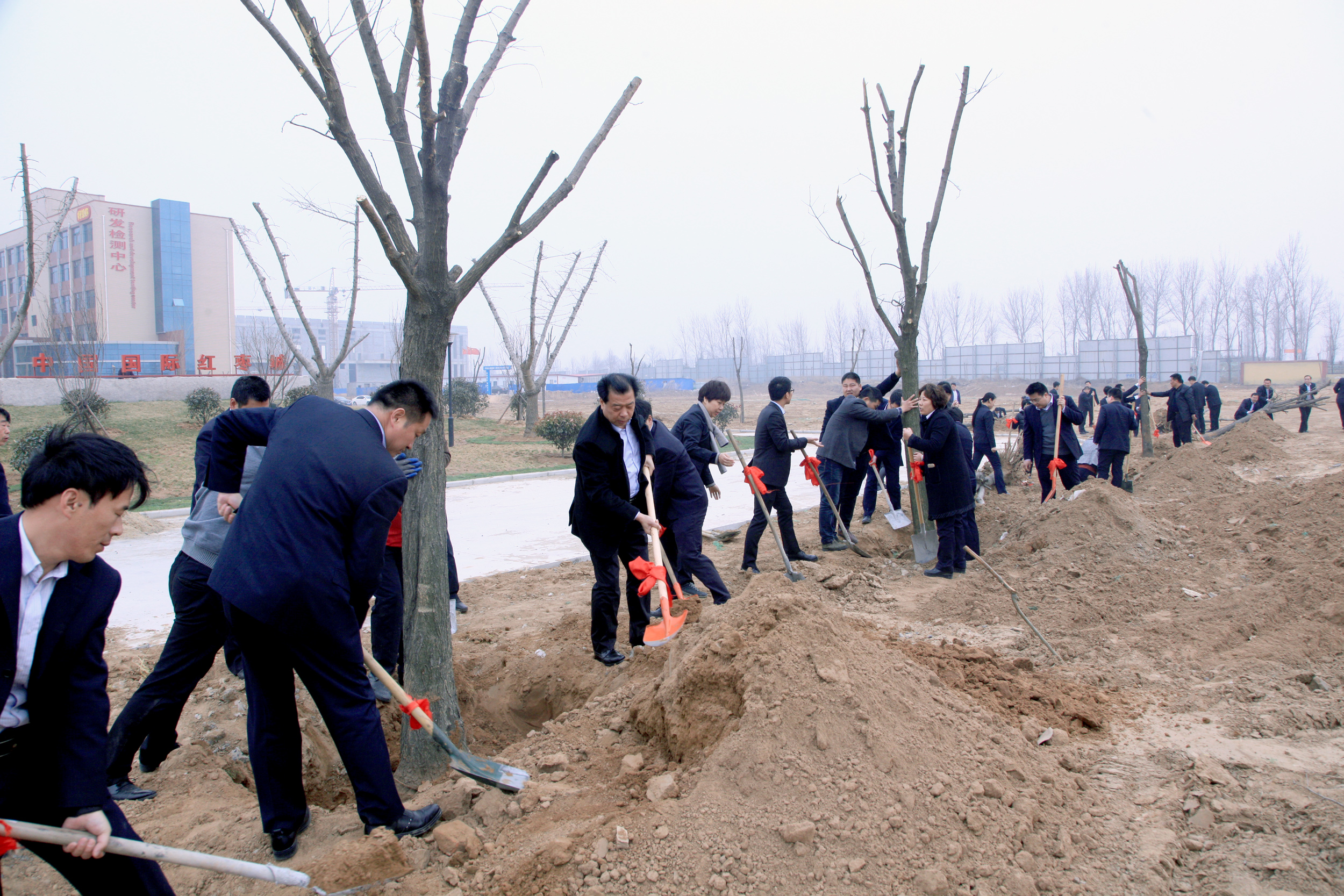 3月7日,在好想你董事长石聚彬的带领下,公司经理级以上职工40多人来到好想你国际红枣综合产业园(简称:红枣城),开展植树活动。