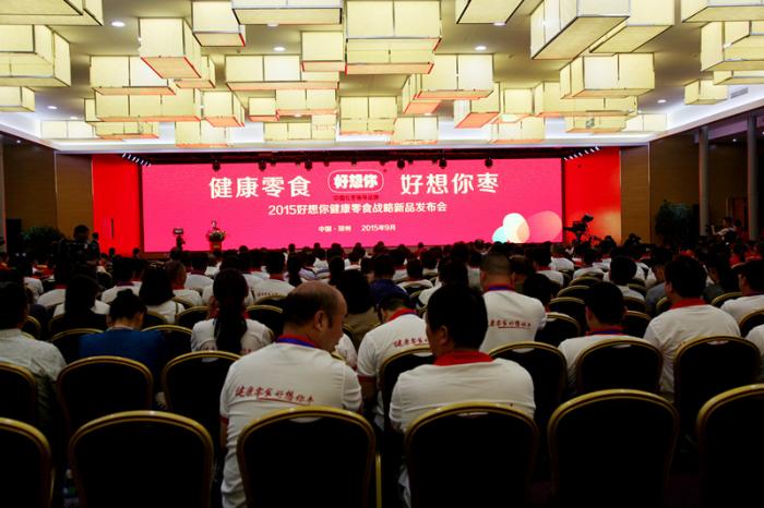 9月5日下午,好想你召开新产品发布会,迷你装的健康零食和好七粥类食养产品相继亮相,为好想你布局“大健康”产业注入强心剂。发布会由央视主持人王琨主持,来自全国产业联盟、精准食养研究院的80多名专家、学者,60名领导嘉宾,及公司中高层管理人员、各渠道代表500多人齐聚一堂,共同见证好想你新产品的面世。