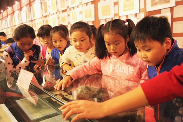 一走进中华枣文化博物馆,萌娃们首先被有128000颗仿真枣做成的“天下第一枣”模型所震撼到,纷纷拍照留念。随后,红枣发源地、8000多年的碳化枣核、丰富的红枣故事和文化习俗、神奇的砑枣技术、形态各异的红枣品种和枣木艺术品、鬼斧神工的枣木雕佛像群……无不让萌娃们倍感新奇。在红色枣园革命文物展馆,小朋友们还认真地做着笔记,随时记下所见、所闻。