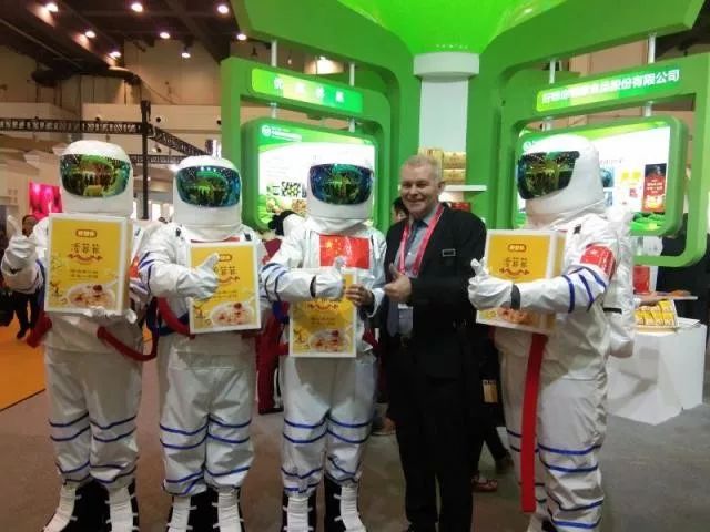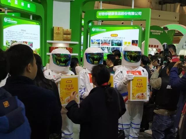 神秘“宇航员”惊现绿博会现场,别具“黑科技”特色的绿色食品吸引了大量的参展客商一探究竟。“是好想你航天黑科技‘清菲菲’”,有一个人高呼。经过了解知道好想你清菲菲是由若羌灰枣、古田银耳、兰州百合、湘潭湘莲、宁夏枸杞五种原材经过冻干技术精心处理后形成的即食养生食品。慢炖两小时,冲泡只需一分钟,可以说是“美颜靓汤”。