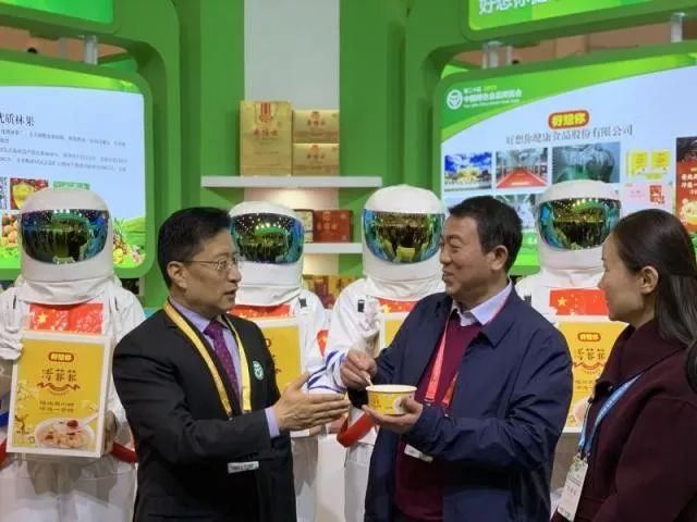 11月29日, 第二十届中国绿色食品博览会暨 第十三届中国国际有机食品博览会在河南省郑州市盛大开幕,农业农村部副部长于康震,河南省人民政府副省长武国定,农业农村部总农艺师马爱国,原农业部副部长、国务院扶贫办主任刘坚以及农业农村部农产品质量安全监管等单位有关负责人出席开幕式。来自全国各地及境外展团的负责人、参展商代表及采购商代表 300余人出席开幕式。 好想你健康食品股份有限公司作为河南省知名农业品牌代表、河南省四优四化优秀代表、河南特色绿色食品品牌代表,携 红枣系列、冻干系列等绿色、有机食品出席了本届盛会。