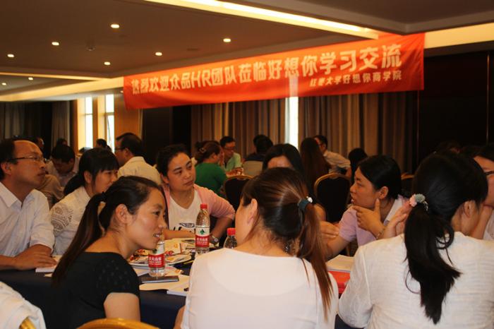 同为食品行业,再加上相似的企业背景,好想你和众品的人力资源团队成员很快熟络起来。在自由讨论阶段,他们分组就招聘、培训、薪酬、绩效四个重要模块碰撞思想、交流智慧。在招聘方面,双方的专业人士分别就如何招到与岗位匹配的人才、如何在互联网时代更高效地招人作了深入探讨;在培训方面,如何让培训跟上企业战略的变化、如何让培训真正给员工带来工作、知识优势成为双方探讨的焦点;而在薪酬和绩效方面,双方对比了各自的组织架构、工作流程等内容,求同存异,在内部、外部薪酬平衡的基础上,探讨更趋于公平、公正的薪酬绩效方案。