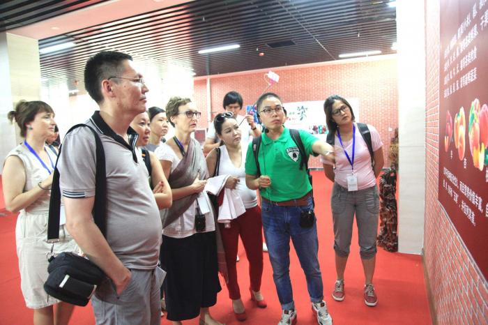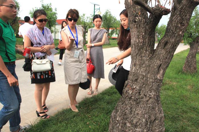 “这些看似个头不大的枣树,竟有几百年的历史。”在好想你木本良生态园,记者团成员们惊讶地感叹道。在风光宜人的枣园中,他们实地了解了红枣的种植环境,考察了红枣的种植技术。独具特色的砑枣技术更是引发了外国记者们的兴趣,他们向工作人员仔细询问具体的操作方法和效用,有的记者还饶有兴致地上前抚摸这些“大肚子”枣树,感受其中凝聚的上百年的勤劳和智慧。