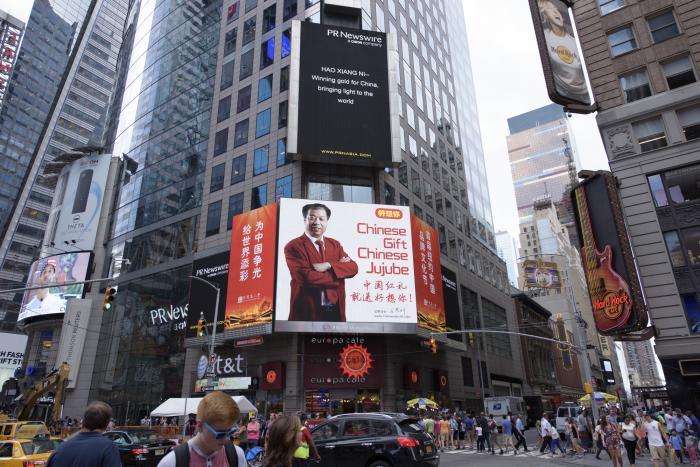 据悉,纽约时代广场,是曼哈顿的心脏地带和最为繁华的娱乐购物中心,年均游客流量4000万人次、人员流量1亿人次,被视为“吸引全球目光”的最佳窗口之一,素有“世界的十字路口”之称。2011年1月,国务院新闻办筹拍的《中国国家形象片——人物篇》就在这里开播,引发国际热议;不久前,中国南海的宣传片又强势登陆这一“世界十字路口”,从7月23号一直霸屏到8月3号,给老美们上了生动的地理课,无疑是“逼格”最高的广告媒体。好想你枣业在转型中升级,在升级中壮大,本次以行业领军企业之姿“霸屏”纽约时代广场,一展中国民族企业傲人风范,助阵祖国奥运健儿们,为国家添彩争光。