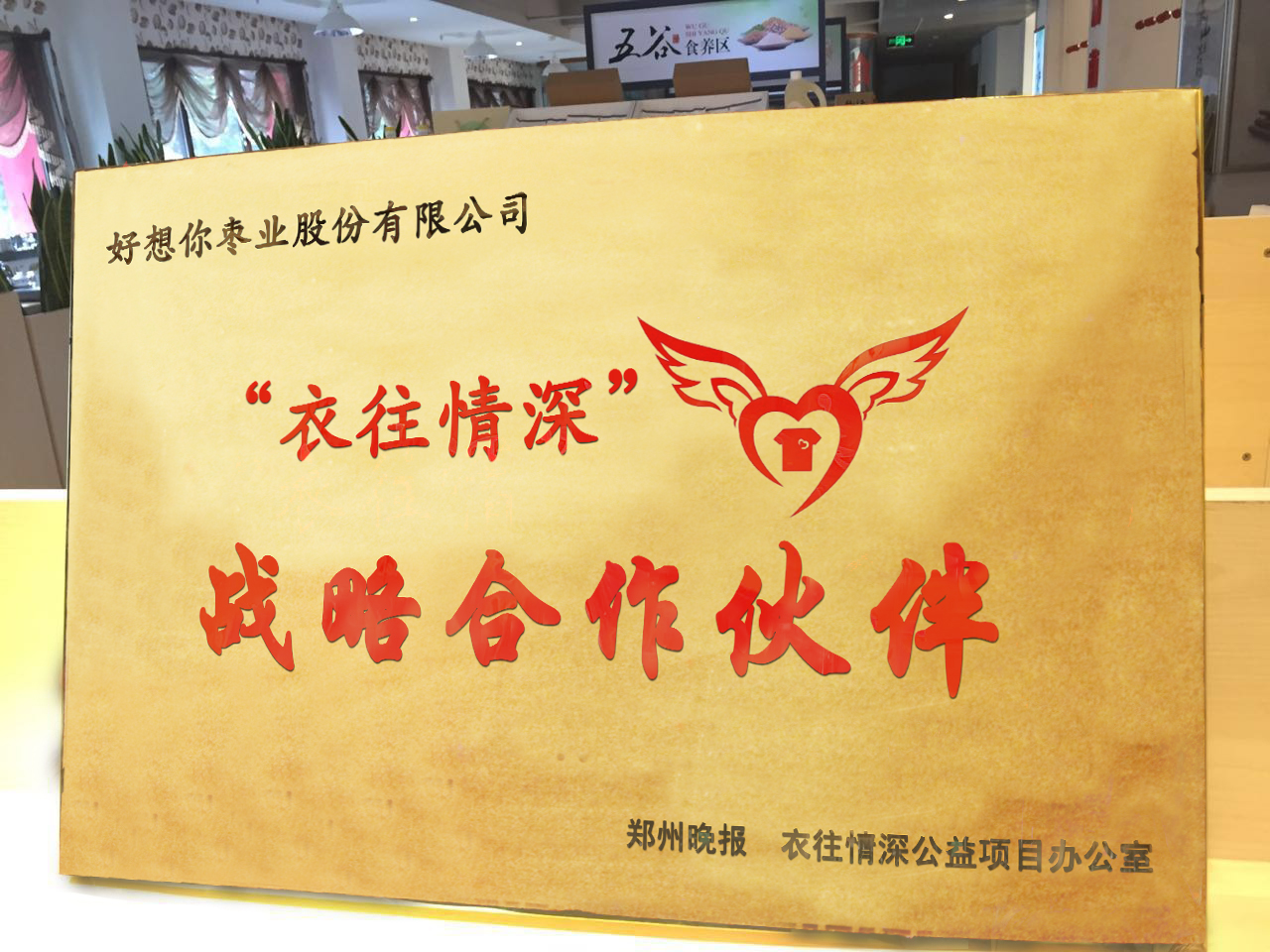 好想你枣业一直热心公益事业,创立育才、爱心基金,关爱老人和留守儿童,筹划好想你希望小学,坚持每年资助“关爱女孩”项目和贫困大学生,为高校捐赠校车、资金等,主动为灾区捐钱、捐物,积极投身地方修路、铺桥等基础设施建设,每年开展送“腊八爱心粥”活动……好想你用实际行动履行着民营企业的责任和担当。本次活动为好想你枣业与“衣往情深”公益项目的首次合作。“衣往情深”项目负责人张影表示:“目前,郑州市区已经铺设大熊猫捐物箱近400个,但仍不能完全满足市民的需求,一些市民仍有衣无处捐。好想你枣业在郑州的百余家连锁专卖店覆盖面广,深入社区,是一个很好的资源优势,好想你枣业加入,将大大促进我们的公益项目的发展,聚集更多市民的爱心。”