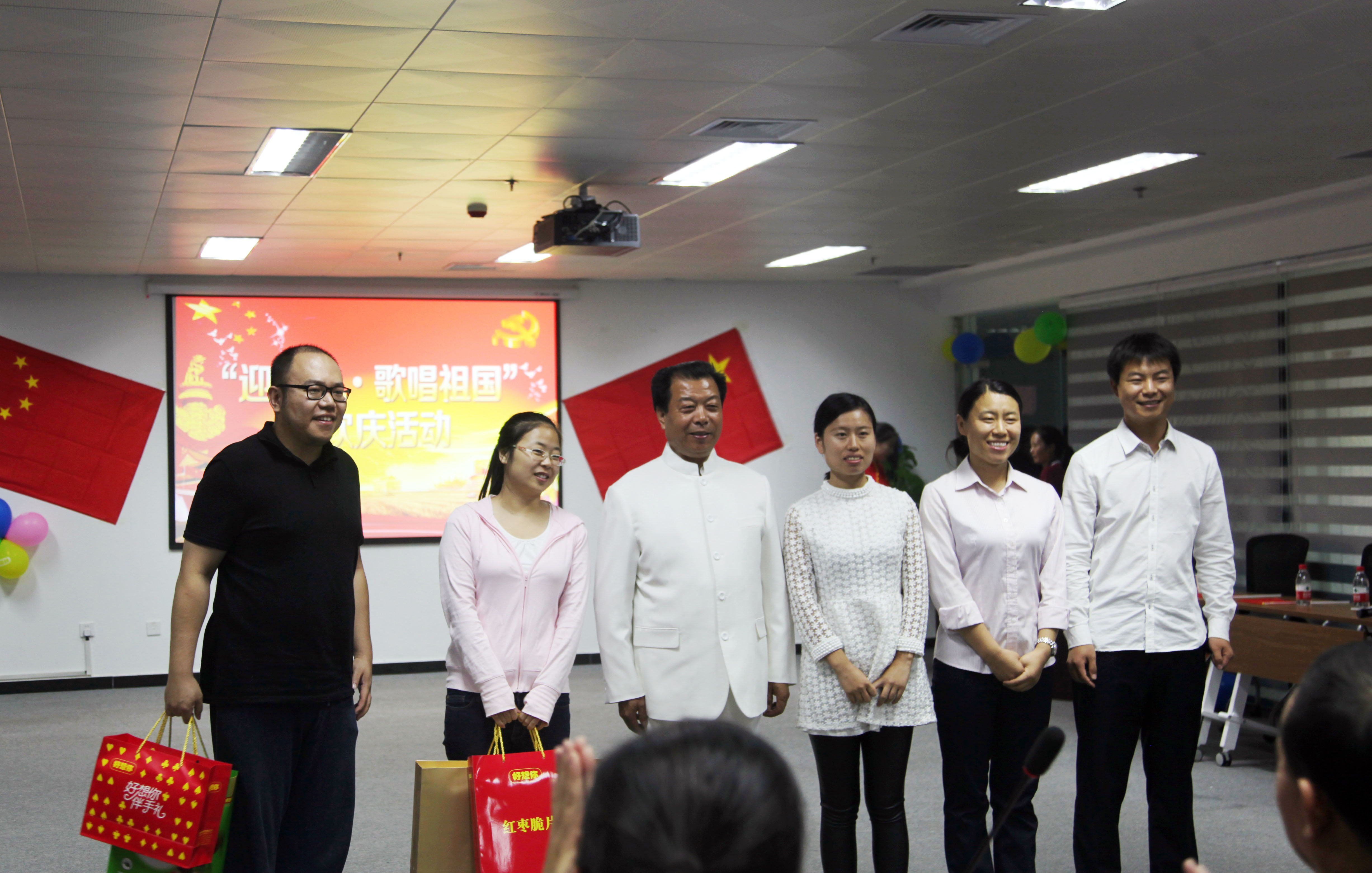 金秋送爽,万里河山披锦绣;丹桂飘香,高歌欢唱寄深情。为迎接伟大祖国67华诞,9月30日,好想你枣业在中国国际红枣城内举办“迎国庆·歌唱祖国”欢庆活动,董事长石聚彬、公司副总级领导、各中心总监与各部门员工齐聚一堂,用精心准备的表演表达对祖国最真挚的祝福。