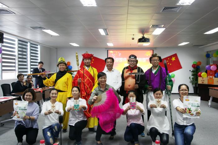 随后,各部门同事带来了形式多样、精彩纷呈的表演。有气势高昂的大合唱,有深情感人的诗朗诵,有活力四射的舞蹈,还有创意十足的小品、三句半等。其中,人力资源中心原创的情景剧《西游剧组好想你》将活动现场推向了高潮,只见他们身穿唐僧师徒的服装、惟妙惟肖的表演为现场带来了欢声笑语,引发掌声阵阵。值得一提的是,在此次活动中,各体系各中心的领导也参与到表演中来,和同事们一同为大家带来快乐和感动。活动最后,董事长即兴表演了诗朗诵并演唱红色歌曲,同事们纷纷挥动手中的五星红旗,一起合唱,现场沉浸在一片红色的海洋中。