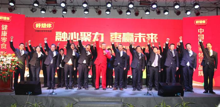 石聚彬董事长在致辞中讲到:好想你是中国健康零食产业的领航者。在特劳特战略定位下,好想你以健康零食进军休闲食品市场,挖掘消费者对休闲食品的天然、绿色、健康等深层次需求。从市场的整体反映来看,消费者对“健康零食好想你枣”接受度较高,即食无核枣的销量节节高升即是有力证明。与此同时,苗国军总经理详细阐述了“聚焦大商超,再造一个好想你”的创造性理念,未来好想你将聚焦大商超,以上海市场为样本,加强推行生动化终端建设,以“健康休闲零食”定位好想你红枣产品,强势占领消费心智,令与会人员对好想你的消费人群和发展模式有了更深入的了解。