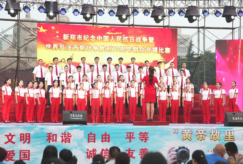 7月7日是抗日战争全面爆发78周年,为铭记历史,不忘国耻,珍爱和平,凝聚力量,建设家园,新郑市委市政府主办,市委宣传部、市总工会、市直工委、市公安局、市文广新局等单位联合承办了这次群众大合唱比赛,组织来自全市机关、企事业单位的31支代表队激情献唱。