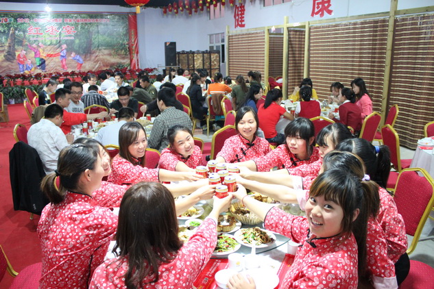 随后,石聚彬董事长逐桌敬酒,和大家共庆佳节。在员工提议下,他还激情演唱了《打靶归来》,那铿锵的旋律激昂着青春,感染着在场的每一个人。 (刘充辉)
