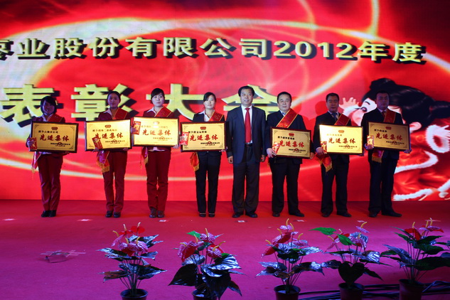 在颁奖典礼上,董事长石聚彬为公司2012年度7个先进集体和石红伟、张丙军两名年度感动人物颁奖,公司副总级高管分别为销售二部总监湛明乾等8名年度感动人物、行政中心企管部王凌燕等年度劳动模范、董事会办公室朱菲菲等年度先进个人颁奖。