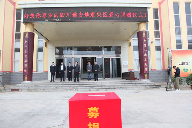 4月20日上午8时2分,四川省雅安市芦山县境内发生里氏7.0级地震后,好想你枣业董事长兼总经理石聚彬立即召开电话紧急会议,研究如何为灾区作贡献,并要求加紧生产救灾产品。