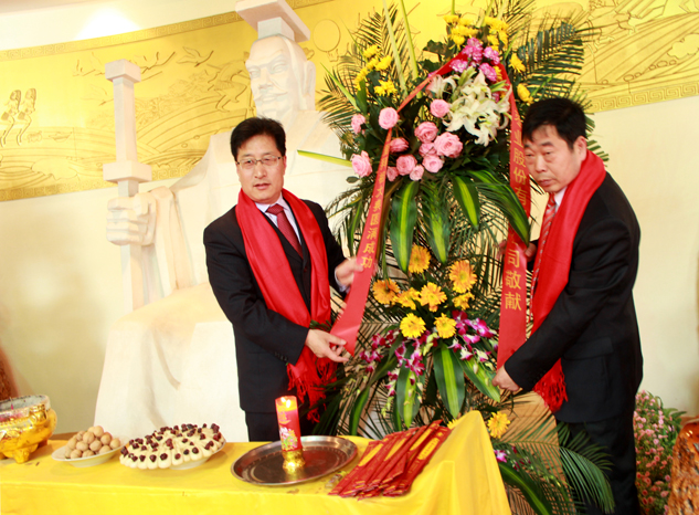 在震耳欲聋的礼炮声中,公司储运部经理任凰玮宣布甲午年好想你拜祖大典正式开始。公司副总经理石聚领、常国杰等一起向黄帝敬献花篮。在气势恢宏的音乐声中,公司各位副总、高管及2013年度感动人物、劳动模范、先进个人代表怀着崇敬的心情依次上前焚香敬献,并向黄帝塑像深深鞠躬致敬,表达好想你人对祖先的无限敬仰之情。随后,众人再次向轩辕黄帝像行施拜礼,深鞠三躬。现场气氛庄严凝重、肃穆深沉,传递着每一个人对人文始祖的敬仰之情。