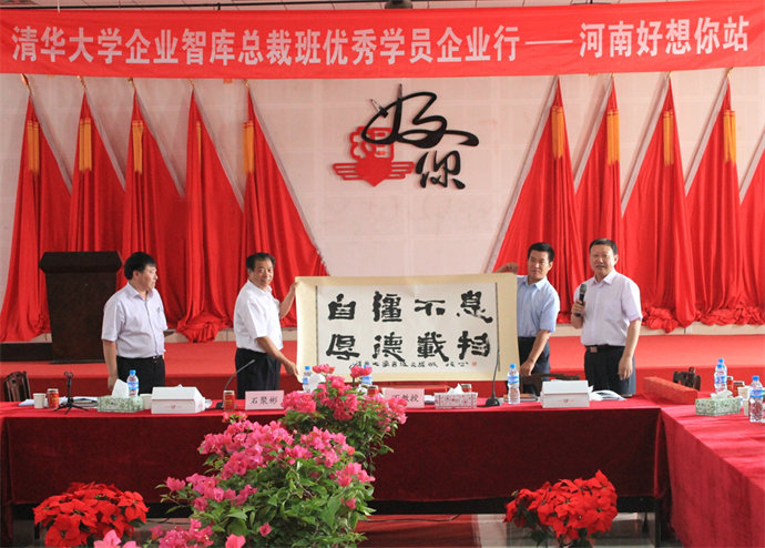 (讨论后,学员们向石聚彬董事长赠送了清华大学校训,并合影留念)