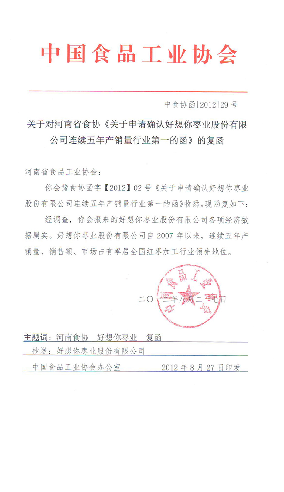 公司董事长石聚彬在开幕式上致辞说,本届好想你文化节既是历年来规模最大、规格最高、内容最丰富的一次,也是活动项目最具趣味性、文化展示最为精髓的一次。今年恰好又是好想你枣业成立20周年和上市一周年,好想你人用20年的辛勤耕耘开创了红枣产业,成就了新郑十万红枣大军投身于红枣产业;在郑州的大街小巷,到处都可以看到好想你的专卖店;在全国各地,种枣、贩枣、加工枣、卖枣的相关红枣产业从业人员多达到几十万人。红枣产业推动了农业、林业、食品加工业、旅游业等多个行业,带动了相关产业近千万人的就业和致富。