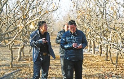 新疆南北的天冷热不均,记者从-1℃的中原大地飞抵-14℃的乌鲁木齐时,冻得直捂耳朵,四处买棉帽,可再飞一个多小时到了阿克苏,却是和河南一样的温度。“白天也就是-1℃,可昼夜温差大,晚上最低气温是-16℃,你看这枣园里,还是白茫茫一片,都是前几天下的雪,一直化不了”,刘书显一边在枣园里拿着话筒做大河客户端直播,一边与正在枣园里剪枝的李成学说着话。