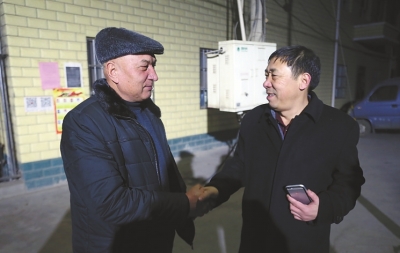 临行前,刘书显给他的维吾尔族师傅拜年并且告别。