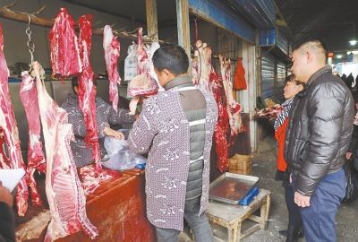 从家中出来,驱车来到菜市场,刘书显在车上等,儿子刘冬小跑到市场上先搬了梨和苹果,又去牛羊肉摊前带了两只羊,“这都是雪山上的羊,好吃,在咱内地根本买不到,这都是我爸提前订好的”,刘冬用小车直接把年货拉到了车前。