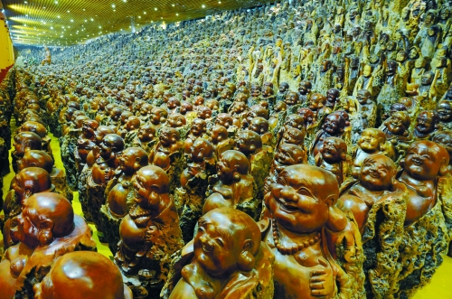 而部分没能移栽成活的古枣树,好想你便将其雕刻成大肚子弥勒佛、释迦牟尼、观音菩萨以及十八罗汉佛像。如今,干枯的古枣树干被雕刻成了8700多尊佛像,这是世界上规模最大、数量最多的枣木雕刻。