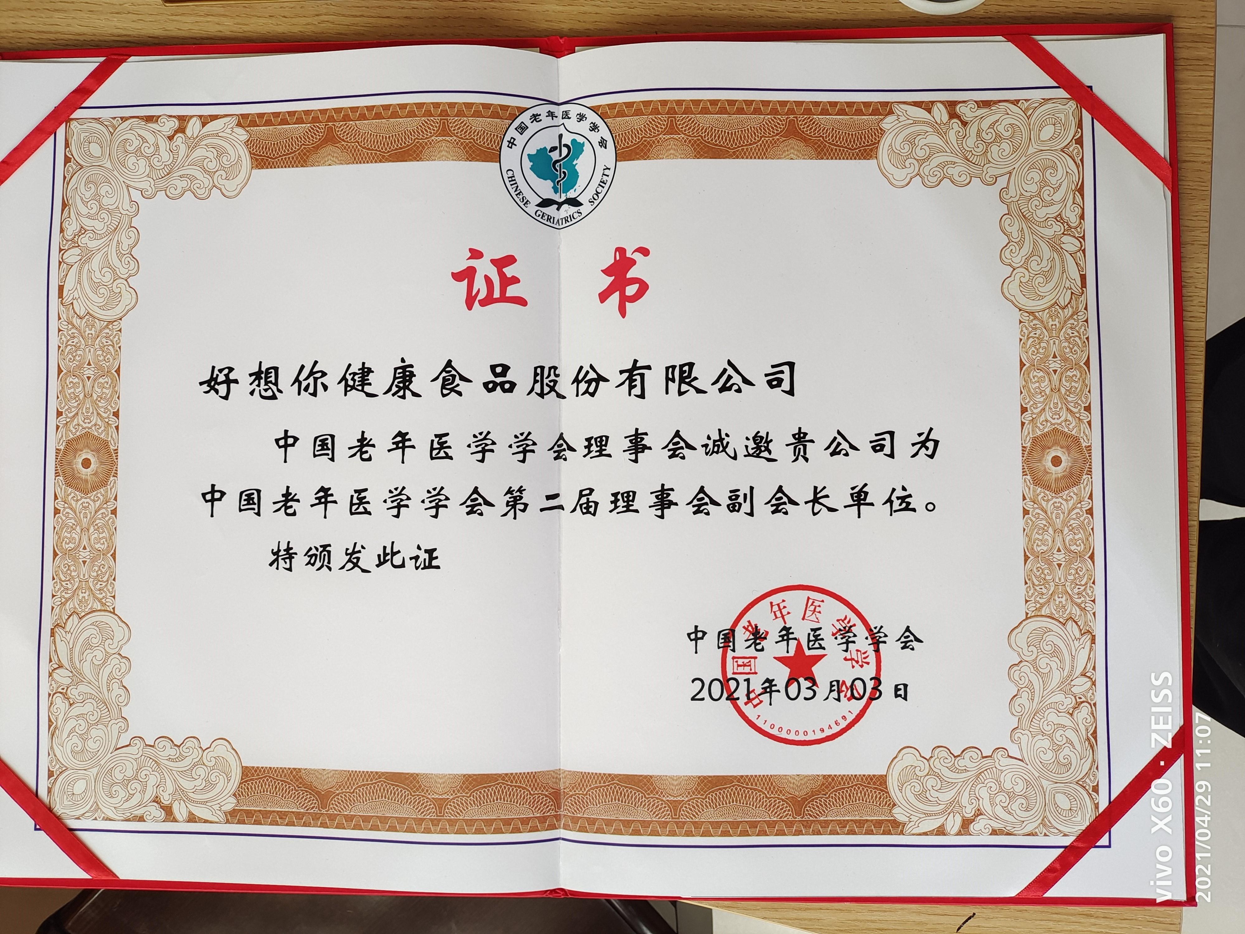 中国老年医学学会第二届理事会副会长单位