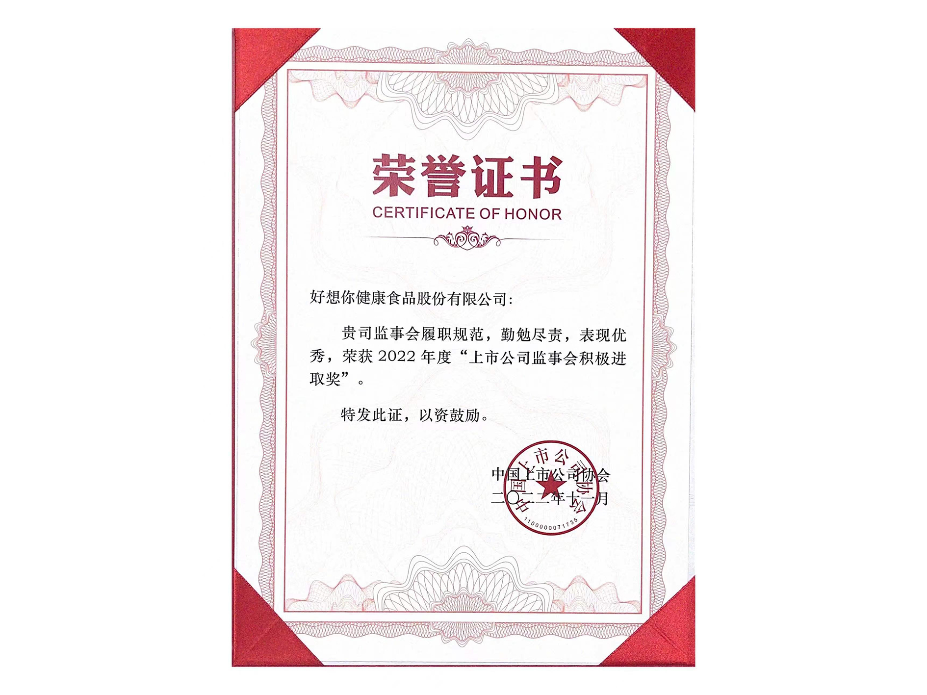 2022年度“上市公司监事会积极进取奖”